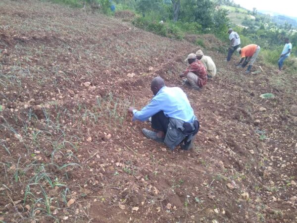Transplantation de pépinières de poireau dans la zone de Greffin / Kenscoff.