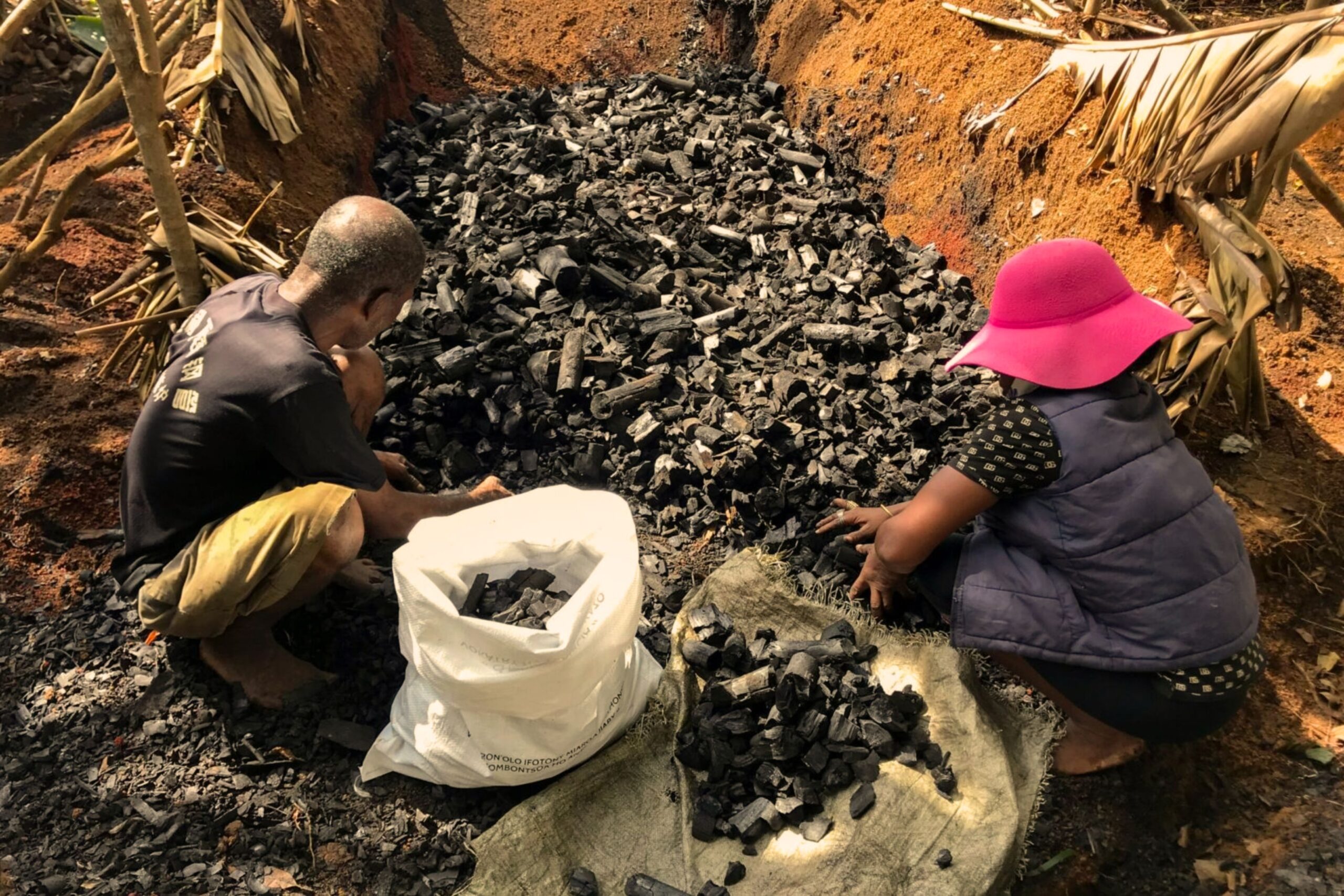 0 Narvel, un producteur de charbon de bois, ainsi que son épouse, commencent à emballer le charbon de bois | Photo : Cécile Schneider