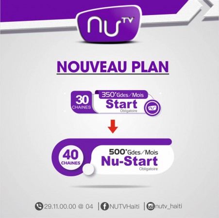 La réalité est quasiment pareille chez NuTV. L’on aura besoin de 3850 gourdes pour se procurer des accessoires pour l’installation incluant le plan mensuel de base qui est de 385 gourdes. Ce plan offre une quarantaine de chaînes incluant 12 qui émettent depuis la zone métropolitaine.