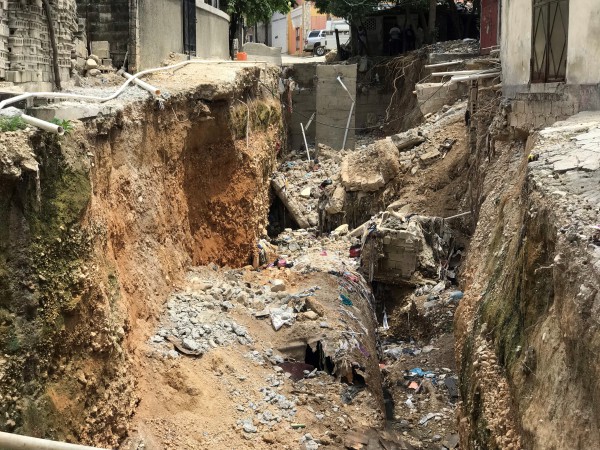 Le passage est impossible d’un point à l’autre de la rue Boucard. Certains résidents se trouvent dans la difficulté de rentrer chez eux, car l’entrée de leurs maisons a été éventrée au cours des dernières inondations.