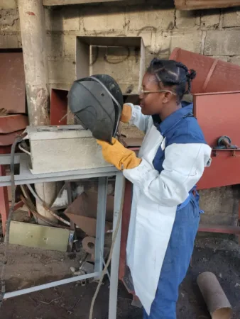 Image de couverture : Marceille Merloude, ferronnière spécialisée en soudure électrique, est en train de souder du fer dans l’atelier où elle travaille à Trou du Nord.