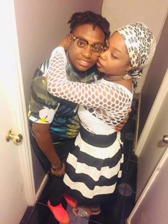 Fadelourde Augustin (avec le foulard) et sa compagne
