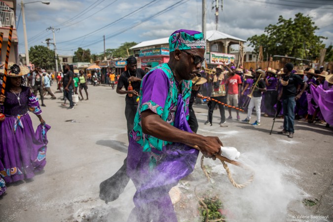 Anviwon yon dizèn gwoup vodouyizan, mete ak de kamyon k ap woule mizik epi youn kote gen miziyen k ap jwe tanbou ak banbou anndan l, ap mete anbyans nan kafou Bigo.
