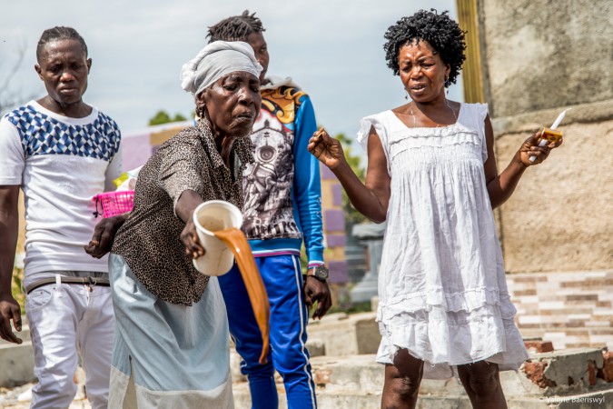 Yon sitwayèn k ap fè demann devan Bawon nan simetyè Gonayiv. Foto: Valerie Baeriswyl / Ayibopost