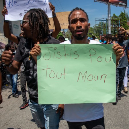Photo de couverture : Wellborn participant à une manifestation le vendredi 17 septembre 2021 devant les locaux du ministère de la Justice et de la Sécurité publique pour demander la libération de Stanley Dronette. Photo: Carvens Adelson / AyiboPost