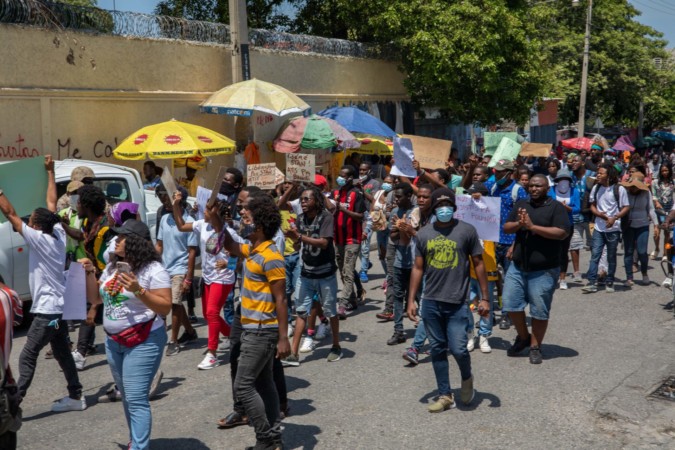 Vue d’une partie des participants lors de la marche du vendredi 17 septembre 2021 devant les locaux du ministère de la Justice et de la Sécurité publique, afin de réclamer la libération de Stanley Dronette. Photo: Carvens Adelson / AyiboPost