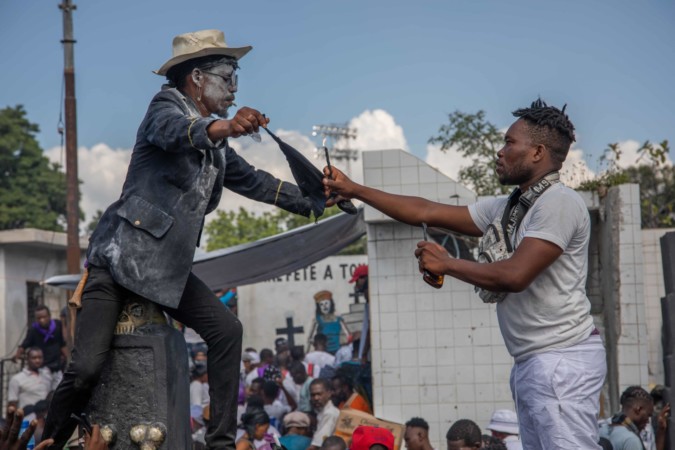Chaque année, les 1er et 2 novembre, toutes les villes d’Haïti s’habillent aux couleurs des gede. A Port-au-Prince, le grand cimetière est le théâtre de retrouvailles entre les morts et les vivants. Plusieurs centaines de personnes ont ainsi défilé cette année devant Baron et les morts, pour demander des nouvelles de leurs disparus.es, retrouver la chance qui a disparu de leur quotidien ou demander des solutions à des problèmes qui semblent ne pas avoir de solutions. Ayibopost s’était rendu sur place pour capter des images de ce moment important de la culture haïtienne.
