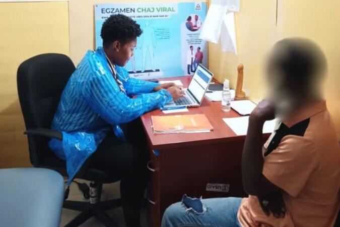 0 Une responsable au sein de l’organisation SEROVIE avec un visiteur, dans les locaux de l’organisation, à Delmas 60. Courtoisie : SEROVIE.