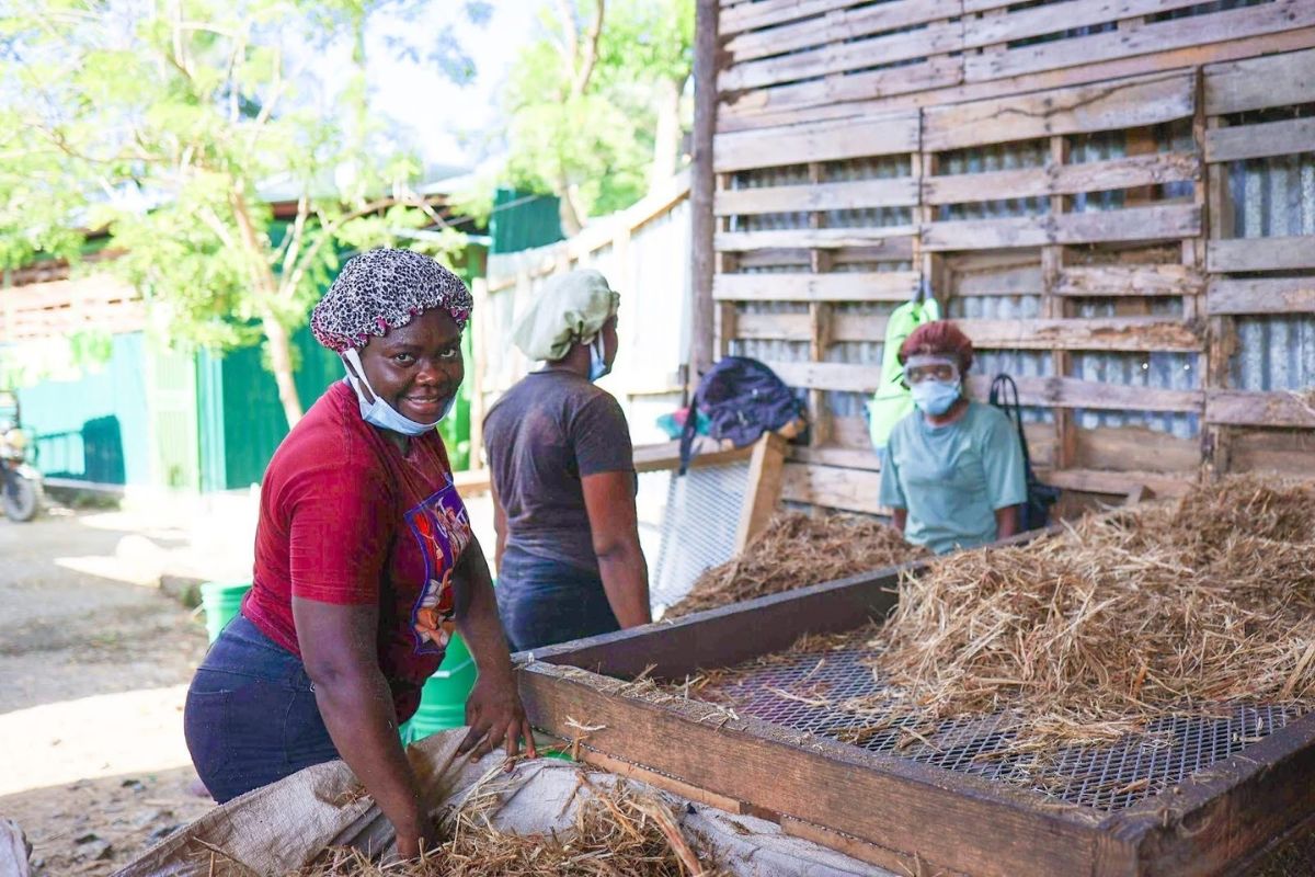 Women produce bagasse at the SOIL production workshop in Quartier-Morin, Cap-Haïtien. Photo: SOIL
