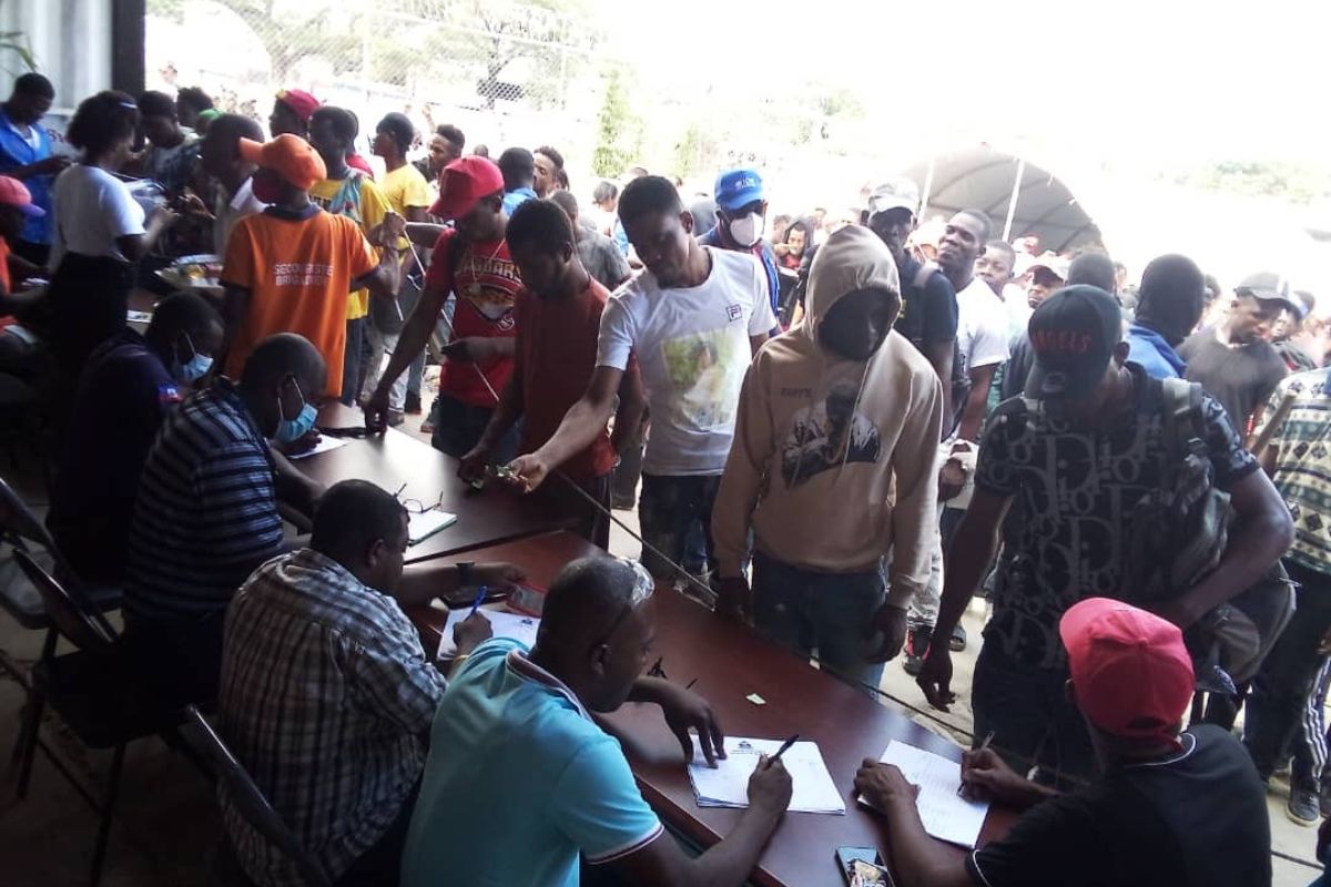 Un agent de la protection civile interroge un migrant sur son statut en provenance de la République Dominicaine lors des opérations de déportation en octobre 2024. Crédit photo : Protection civile.