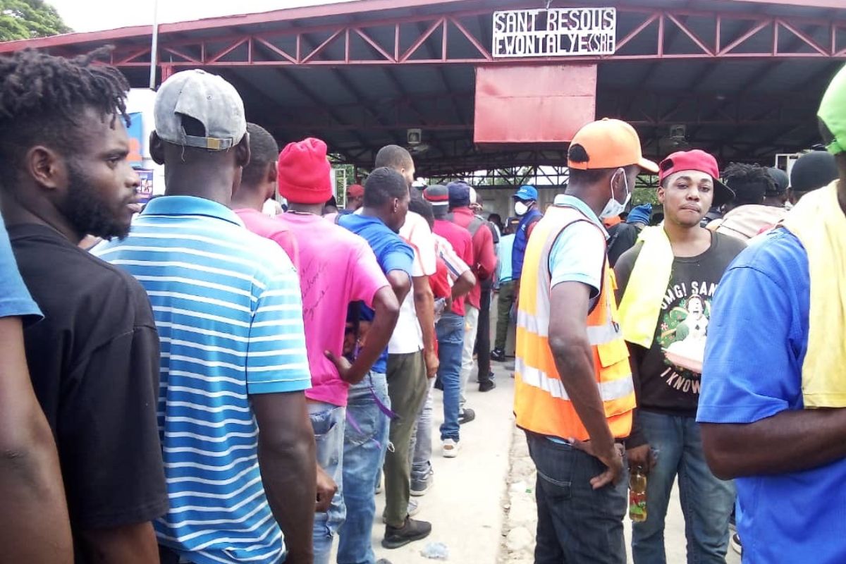 Un agent de la protection civile interroge un migrant sur son statut en provenance de la République Dominicaine lors des opérations de déportation en octobre 2024. Crédit photo : Protection civile.